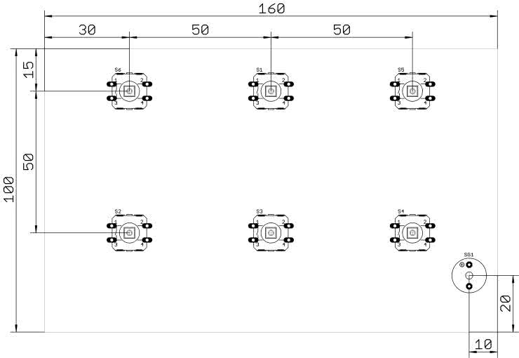 - S1…S6: microswitch 12×12 9 mm np. TS12-130