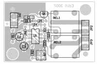 Płytka została dopasowana do łatwo dostępnej obudowy Z–24U z oferty Kradexu o wymiarach 30x48x66 mm. Do kalibracji automatu będzie potrzebny zasilacz regulowany lub źródło napięcia 13,2 V. Przekręcamy potencjometr montażowy R7 w krańcowe, lewe położenie. Załączamy zasilanie 13,2 V. Powoli kręcimy w prawo, aż usłyszymy załączenie przekaźników. Lekko cofamy potencjometr i odłączamy zasilanie. Ponownie załączamy w celu sprawdzenia kalibracji. Prawidłowo wyregulowany układ powinien załączać się przy napięciu 13,2...13,4 V.