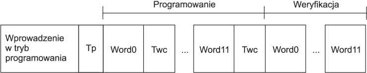 Zaprogramowanie układu sprowadza się do wysłania zawartości pamięci do układu oraz bezpośrednio po tym zweryfikowaniu poprawności zapisanych danych. Poszczególne fazy programowania pokazano na rysunku 1.