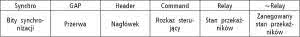 - nagłówka (0b1100), który służy przede wszystkim kontroli poprawności emitowanych danych, jak również podtrzymaniu optymalnych ustawień układu ARW odbiornika,