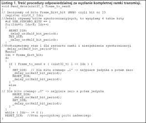 Treść procedury odpowiedzialnej za wysłanie kompletnej, 24-bitowej ramki transmisji (plus bity synchro) przedstawiono na listingu 1.