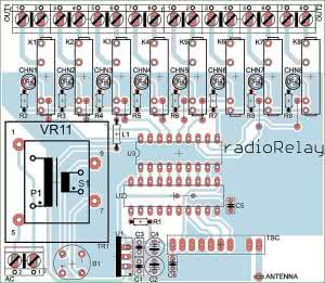 Należy także zwrócić szczególną uwagę na konieczność pocynowania grubą warstwą cyny ścieżek przewodzących duże prądy tj. ścieżek pomiędzy złączami śrubowymi OUT1...OUT2 a przekaźnikami K1...K8 (dla tych ścieżek nie stosowano solder-maski). Antenę wykonujemy według tych samych zasad jak dla modułu pilota sterującego. Poprawnie zmontowany układ powinien działać tuż po podłączeniu zasilania.