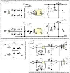 Sam wzmacniacz U3 jest zasilany poprzez dodatkowy filtr złożony z dławika L1 i kondensatorów CE7, C7. Zasilacz napięcia ujemnego jest identyczny. W celu uzyskania dobrych parametrów przedwzmacniacza, należy zastosować kondensatory elektrolityczne o małej rezystancji szeregowej ESR. Układ jest zasilany z dwóch uzwojeń 12 V/200 mA transformatora toroidalnego.
