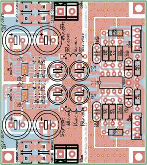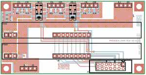 Wykaz elementówPrzedwzmaczniacz: Rezystory: (SMD 1206, 1%) Kondensatory: Półprzewodniki: Inne: Zdalne sterowanie: Rezystory: (SMD 0805) Kondensatory: Półprzewodniki: Inne: Selektor wejść: R1: 100 Ω (SMD 1206) |