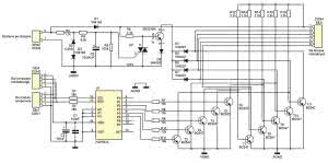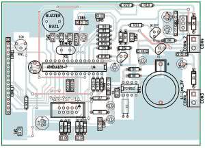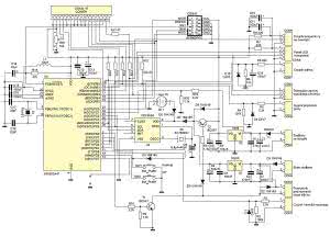 Na rysunku 1 pokazano schemat komputera pokładowego. Sercem urządzenia jest mikrokontroler ATmega168 taktowany zewnętrznym rezonatorem kwarcowym 16 MHz. Obsługuje on interfejs użytkownika złożony z wyświetlacza LCD z podświetleniem, przycisków SW1 i SW2 oraz buzzera BUZ1. Wyświetlacz jest dołączony do złącza CON11 za pośrednictwem 16-pinowej listwy goldpin.