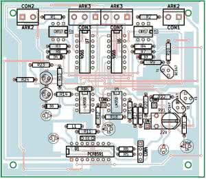 Komputer zbudowany ze sprawnych elementów i prawidłowo zamontowany w samochodzie działa od razu. W module tempomatu, za pomocą RV1, trzeba ustawić napięcie ok.0,9 V na CON7.N napięcie to ustawiamy pokręcając RV1.