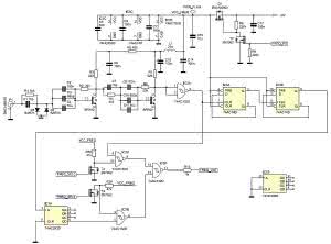 Układ generatora zrealizowano w oparciu o typową aplikację generatora LC ze wzmacniaczem operacyjnym z tym, że zamiast wzmacniacza operacyjnego zastosowano komparator LM311 (IC5) uzyskując w ten sposób sygnał prostokątny. Dzięki zastosowaniu układu generatora z komparatorem, amplituda napięcia w obwodzie LC nie przekracza kilkunastu miliwoltów, co ma istotne znacznie z uwagi na diody pasożytnicze w strukturach tranzystorów MOSFET T8...T11 pracujących w charakterze kluczy.