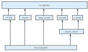 Całość nie jest zależna od żadnych środowisk IDE i może być skompilowana z wykorzystaniem kompilatora przeznaczonego dla ISIXA, lub innego dowolnego bazującego na gcc (arm-none-gnueabi-) Uproszczony diagram klas aplikacji LCFMETER przedstawiono na rysunku 4. Klasa the_application jest klasą główną, implementującą funkcjonalność przyrządu. Statyczny obiekt klasy tworzony jest w funkcji głównej main pokazanej na listingu 1.