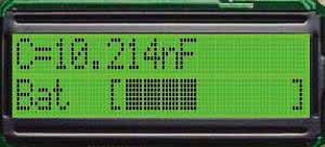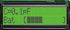 Proces kalibracji może zająć trochę czasu w zależności od stabilności częstotliwości generatora. Po zakończeniu kalibracji miernik powinien przejść do normalnego trybu, a na ekranie powinna pokazać się wartość pojemności zbliżona do 0, natomiast w dolnej linii powinien być widoczny wskaźnik stanu baterii (rysunek 8).