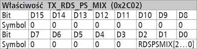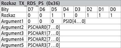 - Bajty PSCHAR0[7...0]... PSCHAR3[7...0] określają kody ASCII kolejnych znaków poszczególnych wiadomości RDS typu PS, których to numer specyfikowany jest wartością bitów PSID[4...0].