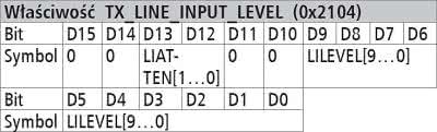 - LILEVEL[9...0]: wartość tych bitów określa rzeczywistą, maksymalną wielkość wejściowego sygnału audio [w mV] w odniesieniu do zakresu zdefiniowanego wartością bitów LIATTEN[1...0].