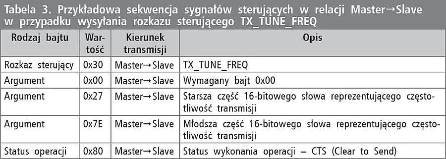Tabela 3. Przykładowa sekwencja sygnałów sterujących w relacji Master?Slave w przypadku wysyłania rozkazu sterującego TX_TUNE_FREQ