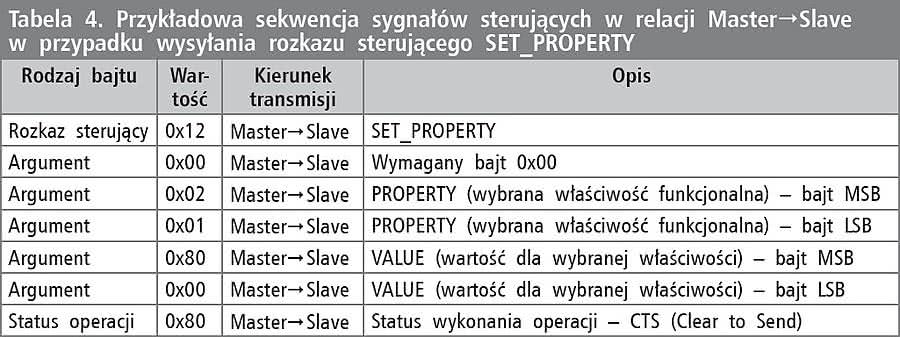 Tabela 4. Przykładowa sekwencja sygnałów sterujących w relacji Master?Slave w przypadku wysyłania rozkazu sterującego SET_PROPERTY