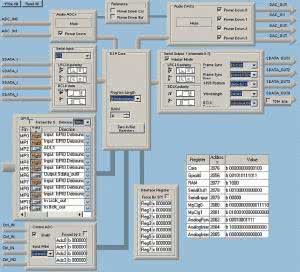 Uruchamiany Sigma Studio i - zgodnie z wcześniejszym opisem - zakładamy nowy projekt. Częstotliwość taktowania powinna wynosić 48 kHz. W celach przykładowych zrobimy z płytki ADAU1701 generator cyfrowy mocy o dwóch częstotliwościach 250 Hz/4 kHz, poziomie regulowanym za pomocą potencjometru dołączonego do MP2 (POT1). W pierwszym kroku konfigurujemy ADAU1701 zgodnie z rysunkiem 3 ustawiając wyjściowy interfejs I²S na wyprowadzeniach GPIO, wyłączając nieużywane w aplikacji przetworniki A/C i C/A oraz ustawiając MP2 w roli wejścia analogowego służącego do regulowania poziomu sygnału.