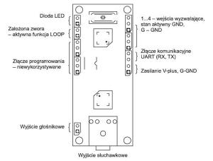 Należy także sprawdzić, czy odtwarzanie może zostać uruchomione za pomocą wejścia sterującego. W tym celu należy odpowiednie wejście 1...4 zawrzeć do masy G. Gdy punkty LOOP i G nie są połączone, to urządzenie odtworzy jeden raz całą ścieżkę dźwiękową. Gdy LOOP jest zwarty do G, to urządzenie będzie odtwarzało tak długo, jak długo na wejściu sterującym będzie stan aktywny (zwarcie do G). W wypadku zwarcia kilku wejść, najwyższy priorytet ma wejście o najniższym numerze.