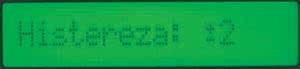 Ponowne naciśnięcie przycisku S1 (przy wyświetlonym poprzednim ekranie) spowoduje przeskok do drugiej pozycji, czyli ustawiania szerokości histerezy tego układu) - jak na fotografii 6. Kolejne naciśnięcie S1 spowoduje przeskok do ostatniej pozycji (fotografia 7), czyli ustawieniu, czy układ współpracuje z urządzeniem grzejącym, czy z chłodzącym. Naciśnięcie S2 lub S3 przełącza rodzaj urządzenia na grzewcze lub chłodnicze. Jest to ważne z tego powodu, że te dwa tryby są sobie przeciwstawne, co ilustruje rysunek 8. Kolejne wciśnięcie S1 lub odczekanie spowoduje zapis ustawień i przejście do pracy.