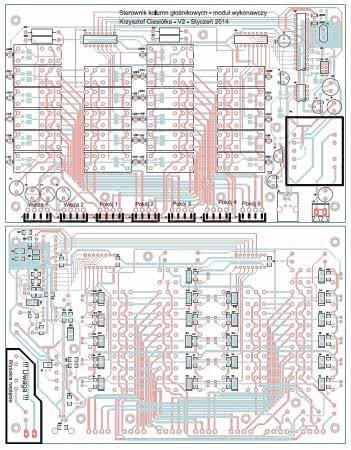 Schemat montażowy modułu sterującego pokazano na rysunku 6, natomiast wykonawczego na rysunku 7. Przełącznik jest zbudowany z elementów mieszanych, jednak elementy SMD są w "dużych" obudowach 1206, które nie powinny sprawić trudności w montażu.