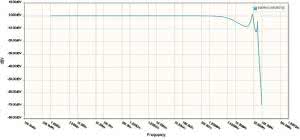 Sygnał prądowy z tego wyjścia podlega zamianie na sygnał napięciowy (rezystor R7) i jest doprowadzony do dolnoprzepustowego filtru eliptycznego 5-tego rzędu zbudowanego z elementów dyskretnych. Ten filtr zapewnia odpowiednie tłumienie sygnałów niepożądanych - jego charakterystykę częstotliwościową zamieszczono na rysunku 8.
