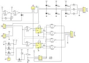 Aby nie dopuścić do uszkodzenia układów CMOS, wejścia te zostały zabezpieczone diodami D1...D6. W przypadku zbyt wysokiego napięcia (przekraczającego poziom napięcia zasilania), przewodzi dioda dołączona katodą do szyny zasilającej. Z kolei, w przypadku przypadkowego podania napięcia ujemnego względem masy, przewodzi dioda włączona anodą do masy. Rezystory R4...R6 ograniczają prąd płynący przez diody.