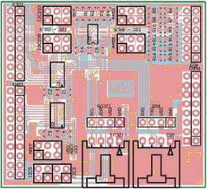 Układ interfejsu uzupełniają złącza transmisji szeregowej RS5/RS3 i szyny I²C I2CV5/I2CV3 z typowym dla Arduino przyporządkowaniem wyprowadzeń, ułatwiającym użytkowanie szerokiej gamy modułów rozszerzeń.