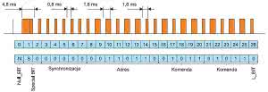 Kolejne impulsy odpowiadają kolejnym bitom danych a czas trwania impulsu zawiera informację o wartości bitu. Po każdym impulsie następuje przerwa o stałym czasie. Logicznej "1" (H_BIT) odpowiada impuls o czasie 1,6 ms, natomiast logicznemu "0" (L_BIT) impuls o czasie 0,8 ms. Czas trwania przerwy po każdym impulsie wynosi 1,6 ms.