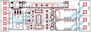 Schemat montażowy odbiornika pokazano na rysunku 7. Ze względu na wymiary jest go łatwiej zmontować niż nadajnik, ale mimo wszystko trzeba mieć trochę doświadczenia. Zasilanie należy doprowadzić do złącza POW, skąd trafia na mostek prostowniczy a następnie zasila stabilizator napięcia +5 V.