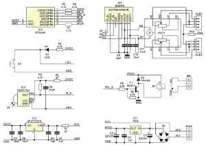 Drugi blok zasilania z układem IC2 to oddzielny stabilizator napięcia +5 V dla mikrokontrolera i jego układów peryferyjnych. Tranzystor T1 i przekaźnik K1 tworzą blok włącznika zasilania. Styki przekaźnika zostały wyprowadzone na złączu REL, mogą załączać zasilanie napięciem 230 VAC lub dowolny inny obwód.