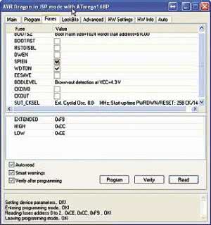 Ze względu na niewielką pojemność pamięci procesora przy próbkowaniu co 100 ms (10 razy na sekundę) w procesorze ATmega328 można zapisać tylko 14 sekund, co wynika z wyrażenia. W mikrokontrolerach ATmega168 lub ATmega88 jest to już tylko 7 sekund, ponieważ pamięć EEPROM ma pojemność 500 bajtów.