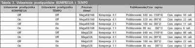 Możliwe ustawienia przełączników KOMPRESJA i TEMPO pokazano w tabeli 3. Oczywiście można użyć innych algorytmów pakowania. Zakładając, że równocześnie zmieniają się nastawy kilku, a nie wszystkich potencjometrów można by użyć algorytmu ByteRun.