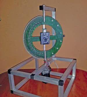 Model mechaniczny - pokazano go na fotografii 5 - składa się z dwóch głównych części. Pierwszą jest statyw urządzenia, który wykonano z rur aluminiowych o przekroju kwadratowym. Do połączenia elementów metalowych zastosowano łączniki kątowe wytworzone z tworzywa sztucznego. Szkielet modelu składa się z podstawy oraz obręczy.