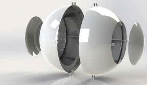 Aby powstał efekt widmowy reprezentujący obraz o dobrej jakości o liczbie kolorów większej niż podstawowa gama 6 barw, konieczne jest uzyskanie dużej prędkości obrotowej linijki diodowej. Skonstruowana wirująca cześć kulistego wyświetlacza ma spore opory powietrza, co przeciwdziała ruchowi. Dla zmniejszenia oporów powietrza i podwyższenia szybkości wirowania zaprojektowano czteroelementową obudowę o kulistym kształcie, która została wydrukowana na drukarce 3D z materiału ABS. Płaszcz obudowy jest cienki, co przekłada się na jej niewielki ciężar, zaś konstrukcję usztywnią odpowiednio rozlokowane żebra. Jej projekt pokazano na rysunku 6.