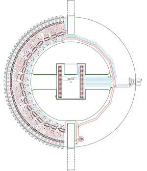 Do zasilania wirującej linijki zastosowano złącze ślizgowe składające się z dwóch pierścieni. Ze względu na możliwość wystąpienia przerwy kontaktu w złączu obrotowym przez czas rzędu mikrosekund zastosowano podwójny zestaw szczotek na każdy pierścień, a także umieszczono w wirującej części urządzenia i połączono równolegle ze źródłem zasilania kondensator o dużej pojemności (1,5 mF). Zapobiega on zaburzeniom pracy mikrokontrolera i psuciu efektu widmowego.