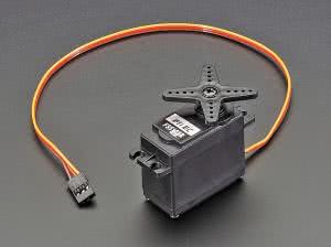 Autor użył serwomechanizmów FeeTech FS5103R (fotografia 1), zasilanych napięciem 5 V o momencie siły przekraczającym 0,3 Nm i wymiarach 37 mm×54 mm×20 mm. Przypuszczalnie trzeba w nich wyłamać ogranicznik obrotu osi, ponieważ serwomechanizmy będą napędzały łopatki śmigiełka dozownika, które musi obracać się dookoła. Plastikowe opaski zaciskowe mogą posłużyć do przytwierdzenia obudów serwomechanizmów do obudowy dozownika, a do ujść dozownika, za pomocą taśmy montażowej mocujemy rury prowadzące do misek.