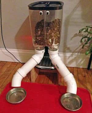 W zależności od fizycznego ustawienia dozownika, przydatne mogą okazać się rurki prowadzące pokarm do misek. Można w tym celu użyć tanich rur PCV, dostępnych w dowolnym sklepie z wyposażeniem domu i ogrodu. Autor projektu połączył całość za pomocą taśmy montażowej i plastikowych opasek zaciskowych (niekiedy nazywanych w Polsce "trytytkami") oraz skorzystał z rurek termokurczliwych do izolacji elementów elektronicznych.