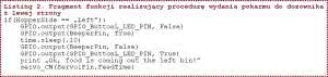 Ponieważ procedura karmienia obejmuje nie tylko samo uruchomienie serwomechanizmów, ale też włączenie buzzera i zapalenie diod, autor przygotował funkcję realizującą tę operację. Fragment odpowiadający za wydanie pokarmu tylko po lewej stronie został pokazany na listingu 2.