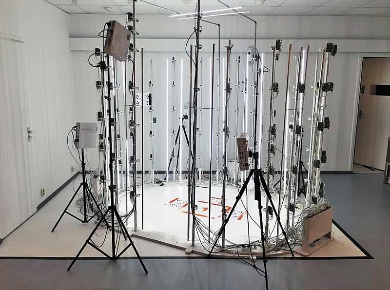 Fotografia 6. Gotowy skaner z 115 kamerami oraz dodatkowymi 6 rzutnikami, które wyświetlają siatkę na fotografowanym obiekcie