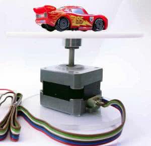W prototypie zastosowano silnik krokowy, który ma skok o 1,8°, a więc pełny obrót wykonuje po 200 krokach. W czasie prób okazało się, że jest to zbyt dużo. Po pierwsze, taka rozdzielczość nie pozwalała na ustawienie dokładnego kąta obrotu, a po drugie, mechanizm drżał, a fotografowany model przesuwał się.