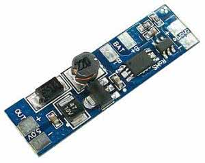 Drugi regulator służy do kontroli pracy akumulatora i podnoszenia jego napięcia do poziomu 5 V (fotografia 7). Zabezpiecza on akumulator i resztę urządzenia przed zwarciami. Został zamontowany w wolnej przestrzeni w bocznej części obudowy. Trzecia przetwornica (fotografia 8) służy ładowaniu akumulatora prądem z 5-voltowego wejścia umieszczonego w dolnej części obudowy. Umieszczono ją mniej więcej tam, gdzie znajdował się oryginalny regulator konsoli.