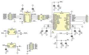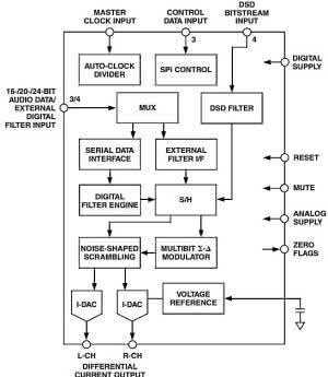 Schemat przetwornika AD1955 pokazano na rysunku 1. Układ AD1955 jest przystosowany do przetwarzania sygnałów w standardach PCM i DSD. W przedstawionym układzie jest wykorzystywany jest tylko I2S/PCM, jednak dla osób pragnących eksperymentować np. z konwerterami USB/PCM (DSD over PCM), sygnały sterujące AD1955 oraz wejście I²S zostały wyprowadzone na złącza zewnętrzne.