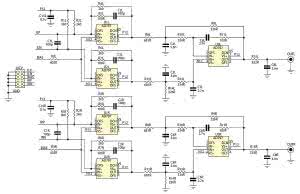 Wyjściowy sygnał analogowy jest doprowadzony do złącza OUTL/R. W układzie zastosowano niskoszumne wzmacniacze operacyjne AD797. Podobnie jak w wypadku elementów R1...R3 przetwornika C/A wszystkie elementy bloku analogowego muszą być precyzyjne i o jak najwyższej jakości (np. DALE RN60), kondensatory powinny być o tolerancji co najwyżej 2%.