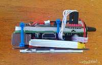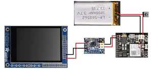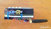 Moduł z modemem został umieszczony od spodu Raspberry Pi. Aby odizolować go od PCB komputera, autor odseparował go grubą, twardą gąbką. Komponenty trzymają się siebie dzięki plastikowym taśmom zaciskowym, co nie jest rozwiązaniem eleganckim, ale w prototypie jest dopuszczalne. Obok modemu doczepiono przetwornicę, a całość połączono przewodami, zgodnie z rysunkami 1 i 2. Raspberry Pi jest dołączony do wyświetlacza, a wiec także i do zasilacza oraz modemu, poprzez goldpiny.