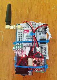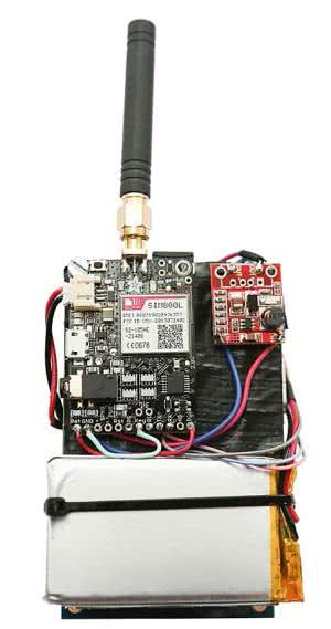 Do komunikacji z siecią komórkową użyto modułu GSM/GPRS. W pierwotnej wersji projektu autor skorzystał z modelu SIM900 firmy ElecFreaks, w której znajdował się układ SimCom SIM900. W nowszej rewizji projektu użyto zminiaturyzowanego modułu Adafruit FONA, w którym zainstalowany był modem SimCom SIM800L. W tym drugim przypadku konieczne jest jeszcze dokupienie anteny.