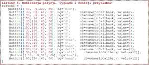 Dzięki temu wszystkie przyciski korzystają z tej samej funkcji, a jedynie parametr określa, który przycisk został naciśnięty. Warto zwrócić uwagę, że jeśli przyciski będą na siebie nachodzić, istotna jest ich kolejność wpływająca na to, który z przycisków został naciśnięty.