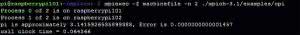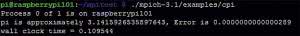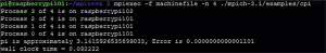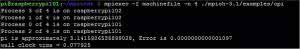 co w naszym przypadku powoduje wyświetlenie informacji, że czas wykonywania programu wyniósł ok 0,110 s (rysunek 4). Jednakże aby wykonać go nie na jednostce sterującej, ale na całym superkomputerze, należy skorzystać z polecenia mpiexec, wskazując plik z listą jednostek wykonawczych, liczbę jednostek które mają brać udział w wykonywaniu pracy oraz właściwy plik wykonywalny do przetwarzania. W przypadku dwóch jednostek polecenie będzie wyglądało następująco: