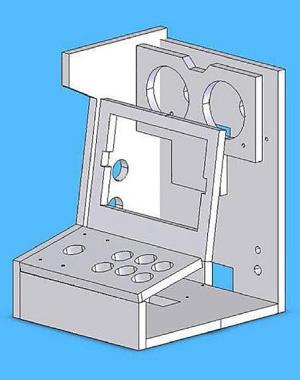 Niestety Retro Built Games nie udostępnia projektów swoich atrakcyjnych obudów do samodzielnego wycięcia, ale za to pozwala bezpłatnie pobrać bardzo prosty projekt (http://goo.gl/d6DruL) - szablon, na którego podstawie można samodzielnie wyciąć i złożyć obudowę z dowolnego materiału.