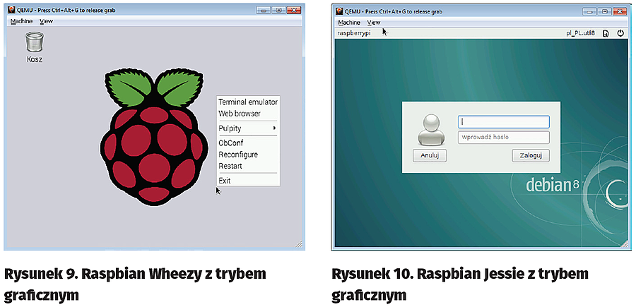 Do uruchomienia emulatora potrzebny jest jego główny program oraz obraz dysku z systemem, który ma być włączony i plik jądra Linuksa, adekwatny do danego systemu. Strona domowa Qemu to http://qemu.org, ale przekierowuje ona bezpośrednio na materiały wiki, podczas gdy skompilowane pliki binarne pod MS Windows (a zakładamy, że taki właśnie system operacyjny jest typowym środowiskiem pracy inżyniera elektronika) można pobrać spod adresu https://qemu.weilnetz.de/. Zarówno wersja 32-, jak i 64-bitowa będzie wystarczająca. My sięgnęliśmy po kompilację 2.7.0-rc3 z 17 sierpnia 2016 r. (http://tinyurl.com/h9sbvsf), czyli najnowszą w momencie pisania tego artykułu. W sieci można znaleźć informacje, że obsługa Raspberry Pi przestaje działać w nowszych wersjach tego oprogramowania, ale w praktyce wieści te wynikają z niezrozumienia różnych trudności związanych z uruchomieniem nowego Raspbiana na Qemu, a my w niniejszym artykule je rozwiązujemy. Stąd można przyjąć, że korzystanie z nowszych wersji Qemu nie powinno pogorszyć sytuacji, a może nawet ją ułatwi.