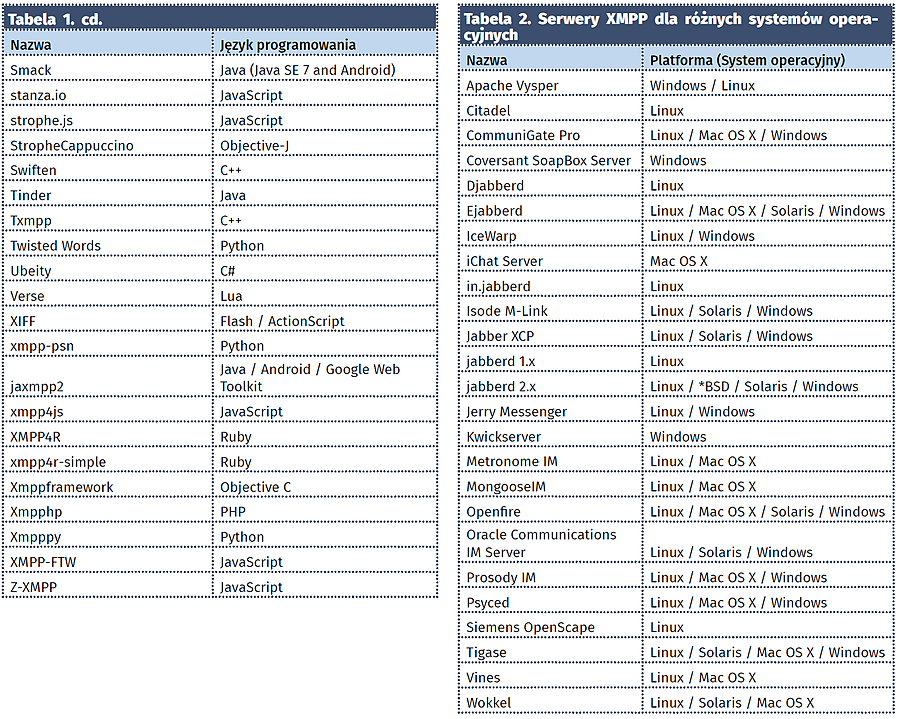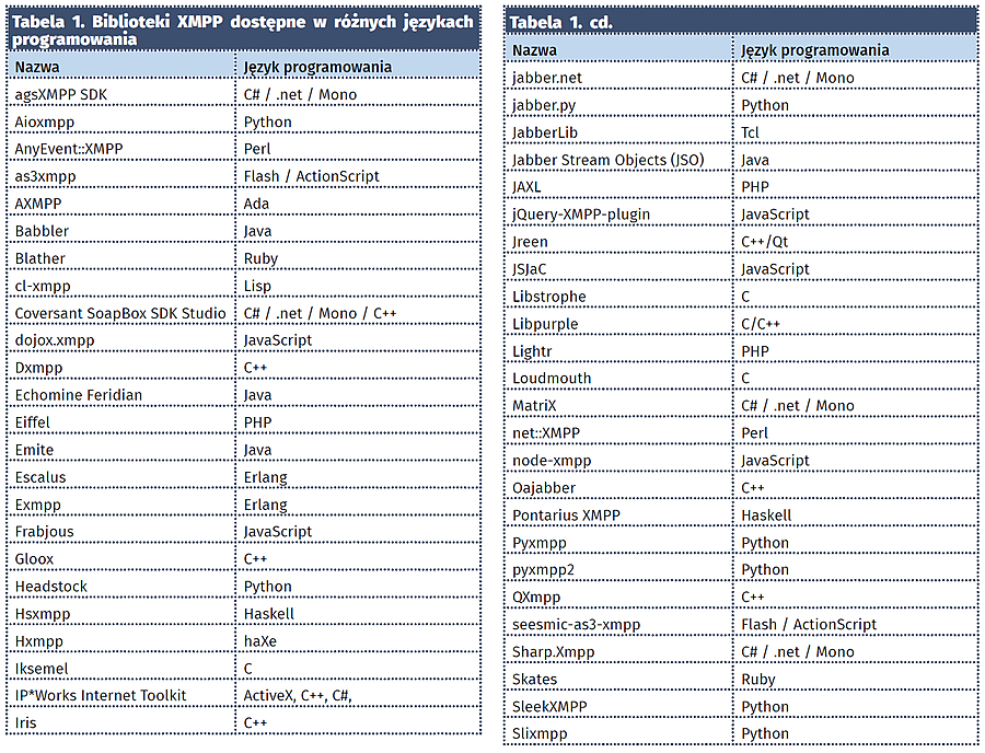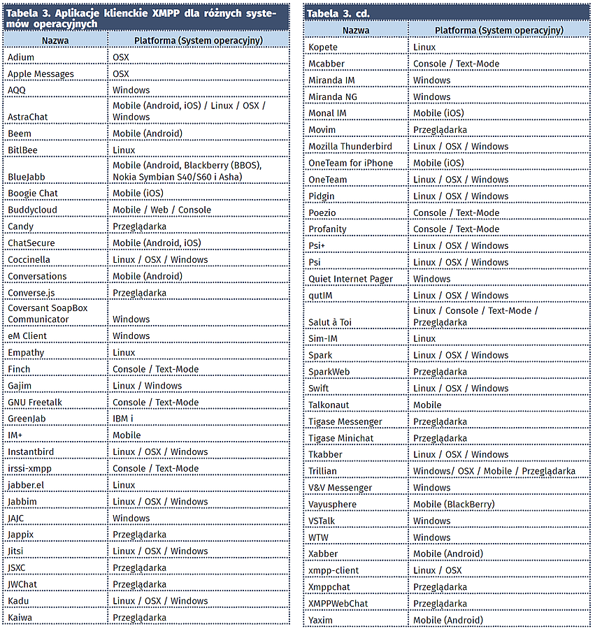 Na potrzeby tego przykładu, by skrócić artykuł, skorzystamy jednak z gotowego, darmowego serwera XMPP. Wybór tego typu usług jest bardzo duży – można je znaleźć spisane pod adresem https://goo.gl/GYtZVa, gdzie aktualnie zabrano 150 pozycji. Każdy z serwerów na liście ma podaną datę utworzenia, kraj, w którym się znajduje, organizację, która wydała mu certyfikat bezpieczeństwa, wykorzystywane oprogramowanie (dominuje Prosody i ejabberd) wraz z datą aktualizacji oraz ocenę klasy bezpieczeństwa. W Polsce dostępnych jest kilka serwerów, z czego nie wszystkie mają dobre oceny bezpieczeństwa. My skorzystaliśmy z serwisu jabster.pl, który jak się okazało, wskazuje aktualnie na serwery jabbim.pl.