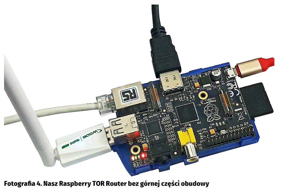 Do wykonania własnego Raspberry TOR Routera nie trzeba wiele. Wystarczy stary Raspberry Pi, 4-gigabajtowa karta pamięci SD, zasilacz USB z kablem microUSB i bezprzewodowa karta sieciowa. W naszym przypadku wykorzystaliśmy niedrogą (wartą ok. 4 USD) kartę 802.11n 150 Mb/s z interfejsem USB 2.0, opartą na chipsecie Realtek RTL8188. Potrzebny jest też przewód do podłączenia Raspberry Pi do sieci przewodowej. Karty Wi-Fi nie należy początkowo podłączać do urządzenia.