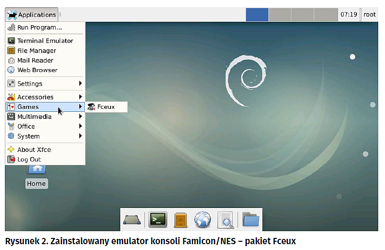 Po zakończonym etapie instalacji pakietu w sekcji Games środowiska Xfce zostanie dodany nowy wpis, pozwalający na uruchomienie emulatora bezpośrednio z interfejsu graficznego – rysunek 2.