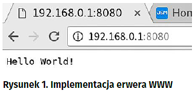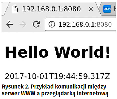 Jeżeli próba uruchomienia skryptu została zakończona sukcesem, wpisując w oknie przeglądarki adres IP podłączonego do sieci komputera VisionSOM, zobaczymy pierwszy rezultat działania serwera WWW, jak pokazano na rysunku 1.